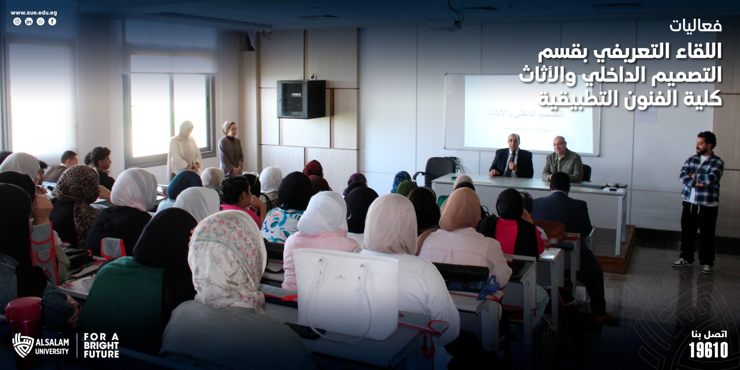 في أجواء تفيض بالحماس والطموح، استقبلت كلية الفنون التطبيقية جامعة السلام طلابها الجدد في اللقاء التعريفي الثالث، بهدف التعريف بـ قسم التصميم الداخلي والأثاث، أحد أكثر الأقسام تميّزًا وإلهامًا في الكلية.