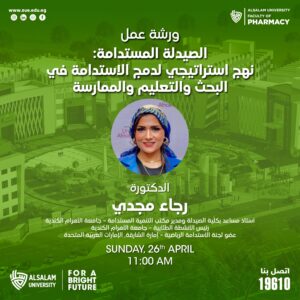 في هذا الإطار، تنظم كلية الصيدلة بـ جامعة السلام ورشة عمل بعنوان: