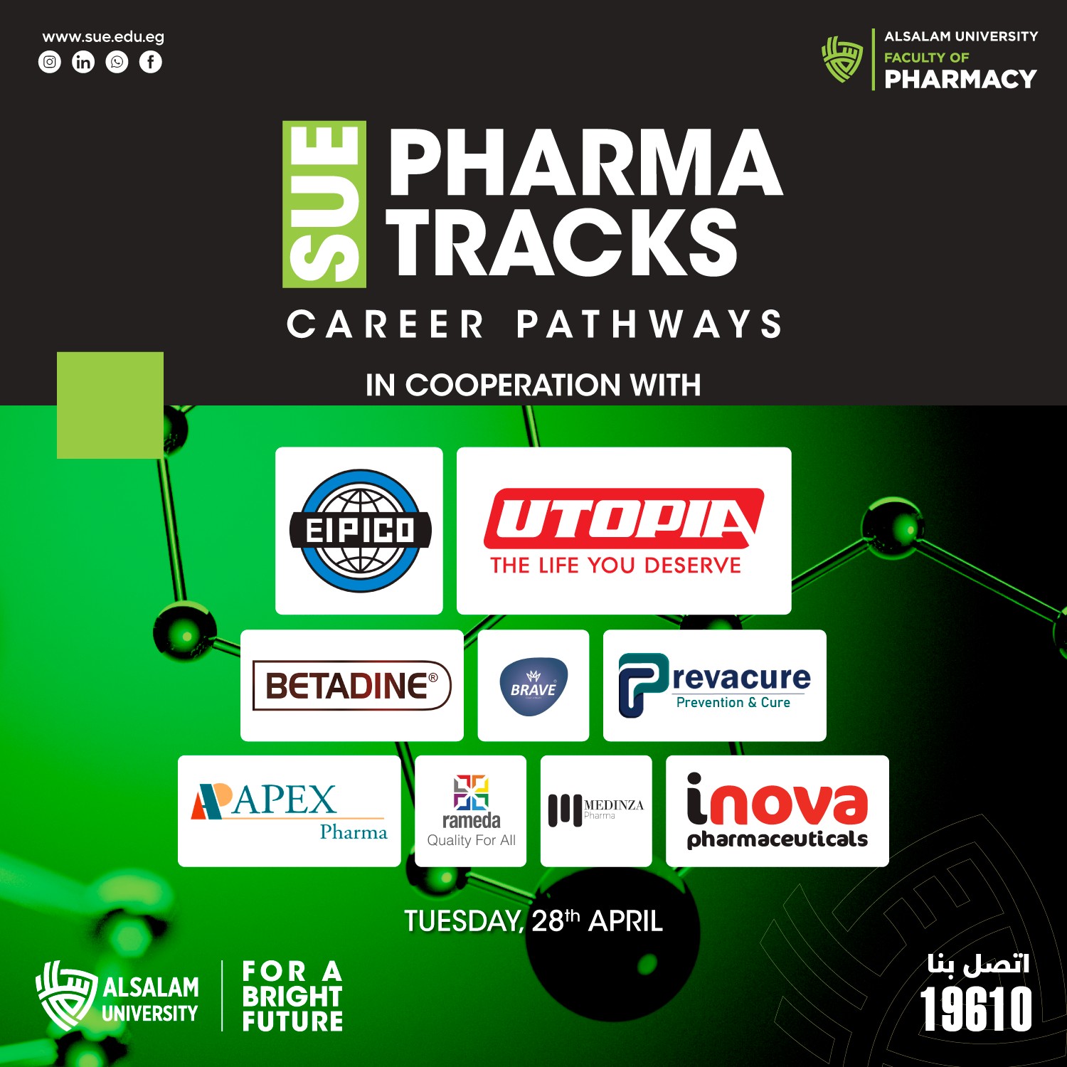 In line with this vision, the Faculty of Pharmacy at Alsalam University announces the organization of Pharma Tracks Career Pathways 2026, a platform that bridges academic learning with real industry experience through direct interaction with leading pharmaceutical companies and pharmacists’ syndicate representatives across Egypt, in one of the most impactful career-focused events on campus.